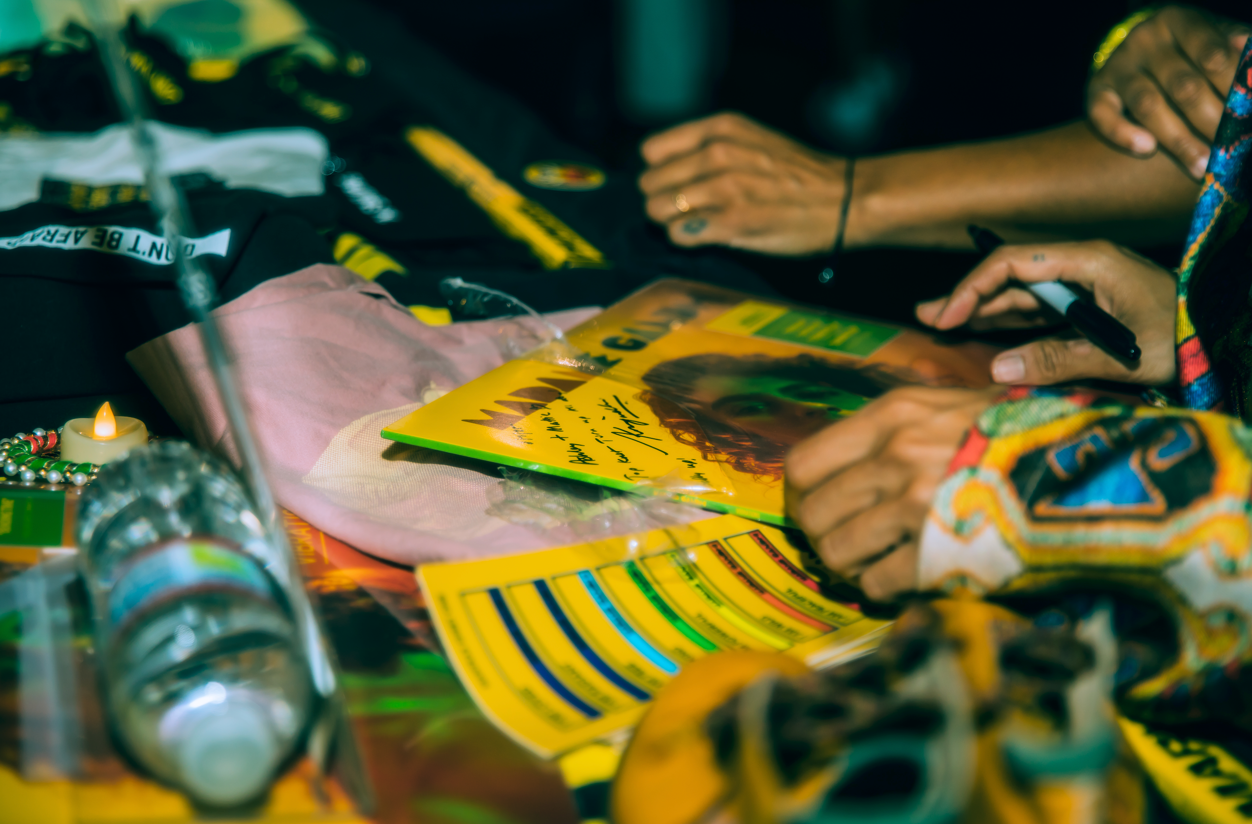 Pls let us know any personalization requests if you select signed vinyl by emailing us at hello@madamegandhi.com.